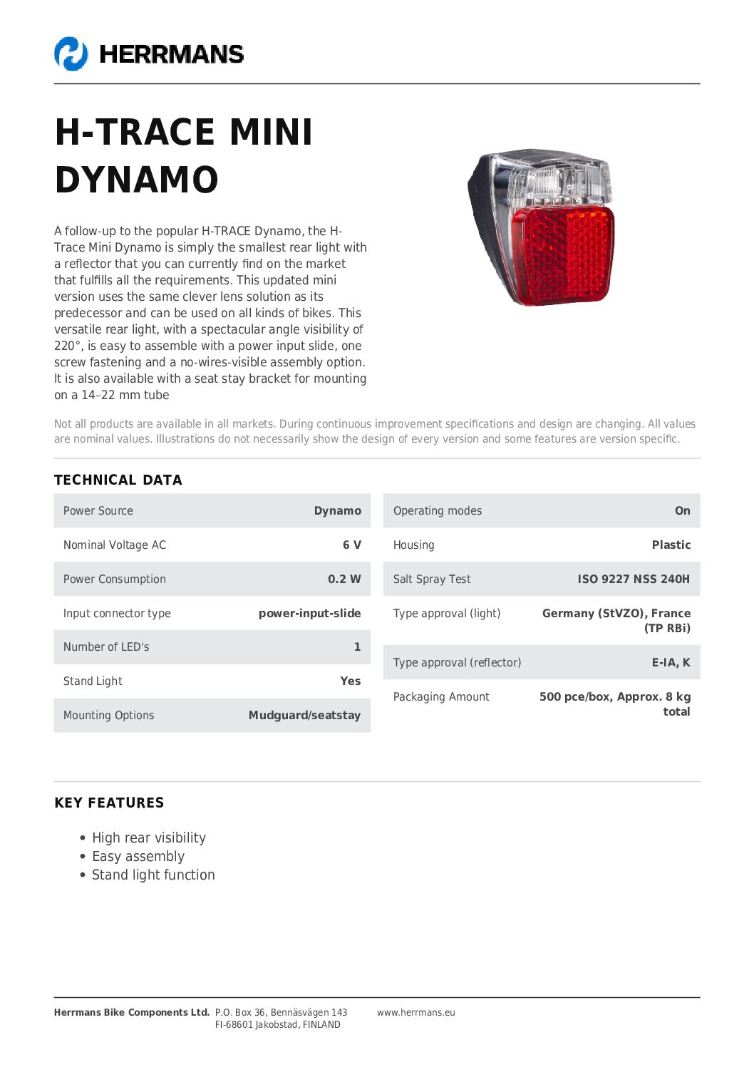Φανάρι εμπρόσθιο  HERRMANS H-TRACE MINI   6V/0.2W